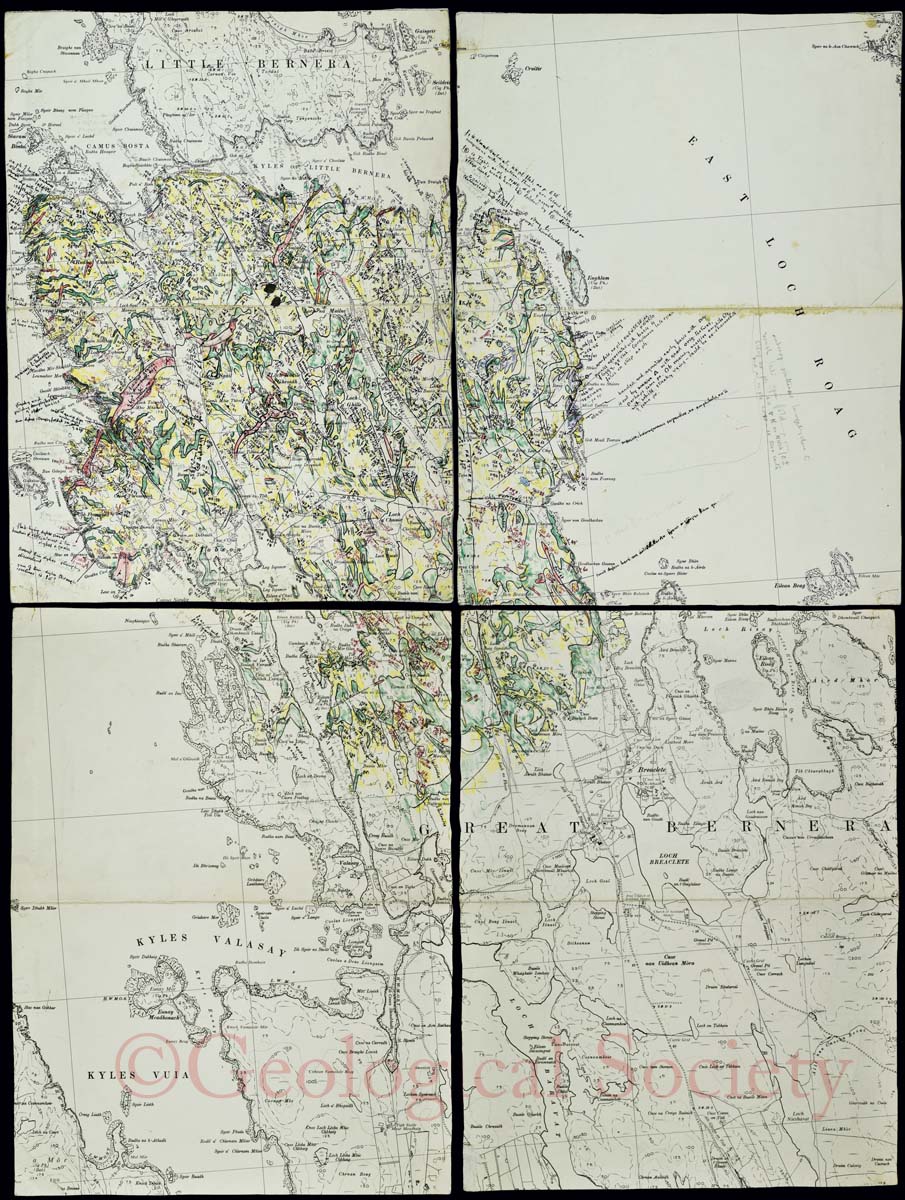 Therefore, just as her mentor H H Read did before her, Watson built up a team of postgraduate researchers (who included Mike Coward, Rod Graham, Rick Sibson, Peter Francis and Richard Lisle amongst their number) to investigate areas of her own interest. These heavily annotated sheets, probably dating from this period, record in detail the geological features of Great Bernera, one of the islands to the west of Lewis.